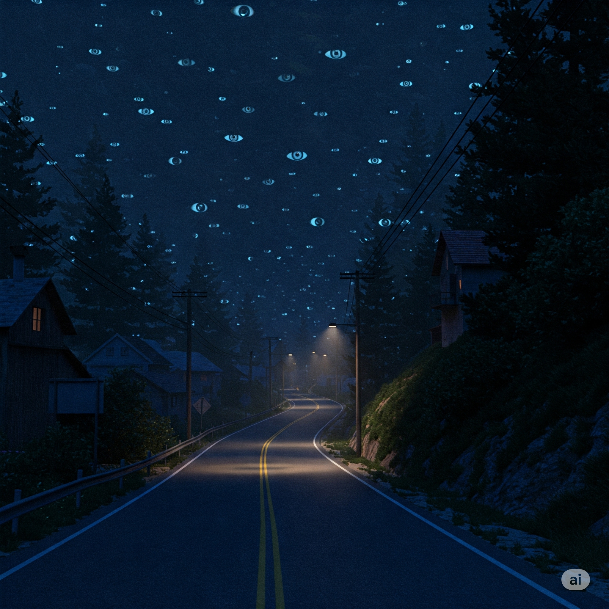 एक अंधेरी रात को में सड़क किनारे चल रहा था। यह बात मालूम हुई कि ये मेरा सपना है जब मैंने पाया कि ऊपर साफ़ आसमान में हर एक एक तारे की जगह मेरी ही आँखें बनी हुई है जो मेरी ही ओर देख रही है। ये रास्ता पहाड़ की ढलान पर है और इसके दोनों ओर घर व पेड़ो की कतार है। मिस्टर एंड मिसेज जॉन्सन; इनका घर लकड़ी का बना है। घर बाहर से नया और साफ सुथरा लगता है। घर की चौखट पर एक गहरे भुरे रंग का कुत्ता सोया हुआ है और आगे गेट तक पौधों का बगीचा सजा हुआ है।